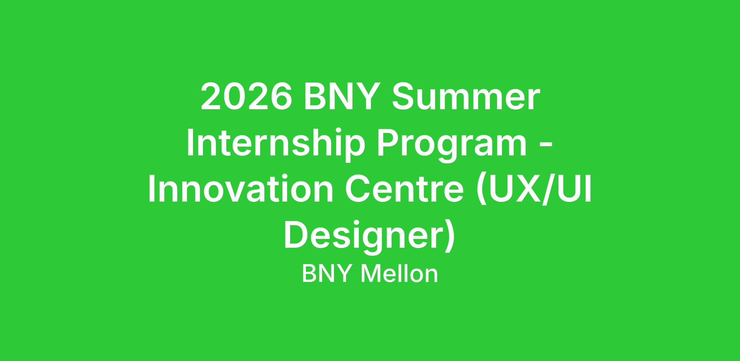 2026 BNY Summer Internship Program - Innovation Intern (UX/UI Designer)